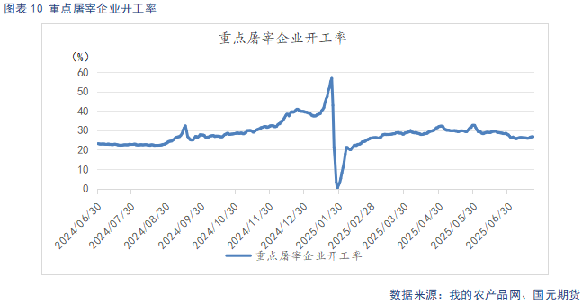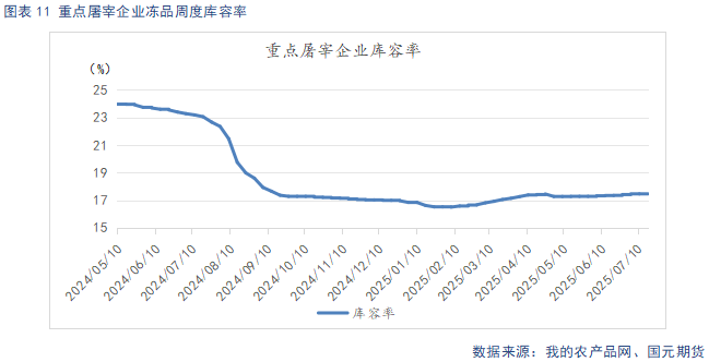 截至7月22日,重点屠宰企业开工率为26.48%,较上周环比上升0.37%。冷冻肉库容率17.44%,较上周环比下降0.02%。需求淡季,下游走货偏慢,开工率近期有所反弹,但整体仍在低位窄幅波动。冻库库存方面,冻肉走货缓慢,且终端鲜销走货不畅,存在被动入库的现象,冻品库存去库缓慢。