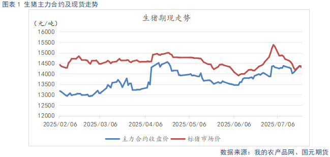 现货处于供需博弈阶段,猪价回落后,养殖端挺价情绪升温,加之二育逢低入场,支撑猪价回暖。不过当前高温天气,终端需求低迷,压制猪价上行空间,猪价整体偏震荡。盘面受情绪支撑,相较于现货,表现强势,近期已由贴水,变为升水现货。