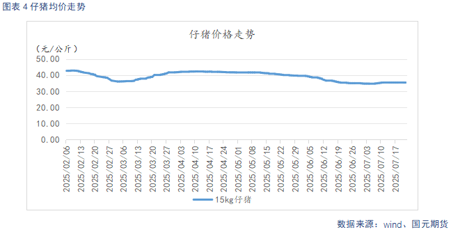 截至7月22日,仔猪出栏均价35.46元/公斤,较上周环比上涨0.01元/公斤。近期市场看涨情绪升温,仔猪补栏意愿增加,仔猪价格回暖。