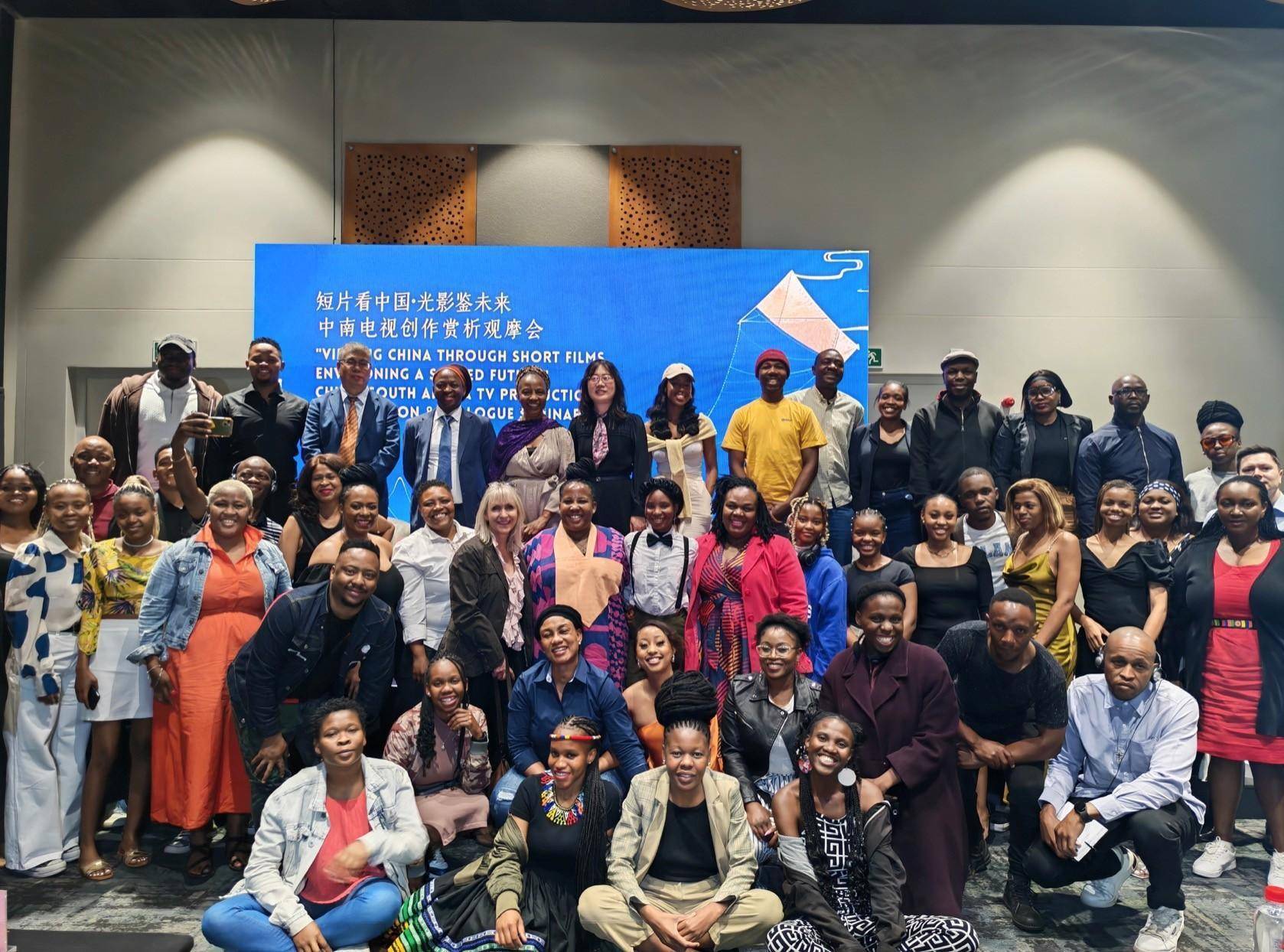 人民网约翰内斯堡9月8日电 (记者戴楷然)6日,由中国文学艺术界联合会、中国驻南非大使馆指导,中国电视艺术家协会、南非金砖国家电视台、中国外文局西欧与非洲传播中心共同主办的“短片看中国·光影鉴未来”——中南电视创作赏析观摩会在南非约翰内斯堡举办,中国文联党组书记、副主席张政,中国驻南非大使馆公使覃展鹏,南非著名艺术家杜·诺奎,南非金砖电视台台长阿扬达·霍洛及两国文化艺术界人士近百人出席。