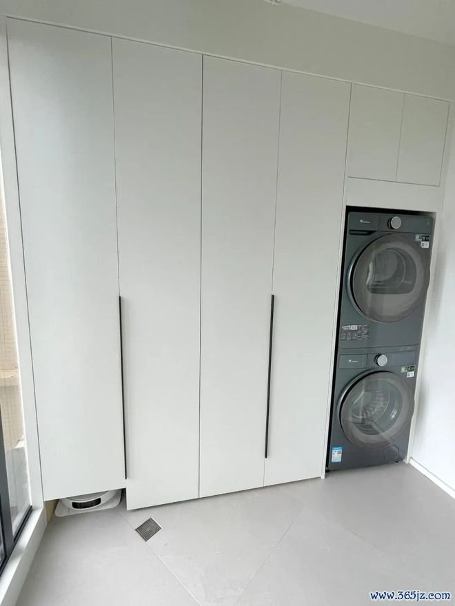 如果扫地机器人也准备放在这里,柜门得单独短一截,方便机器人自由进出,记得留好插座和上下水。