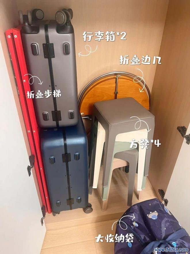 邪修思路:行李箱本身就是一块收纳空间,将一些闲置物品装进去,再找个空间收纳起来,就不会觉得它占地方了。