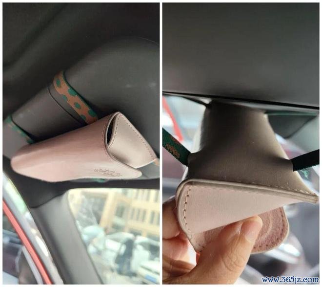 眼镜盒背面用剪刀戳四个孔,再找两根松紧绑带串起来,就变成一个车载眼镜收纳盒了,不占空间,用着也方便。
