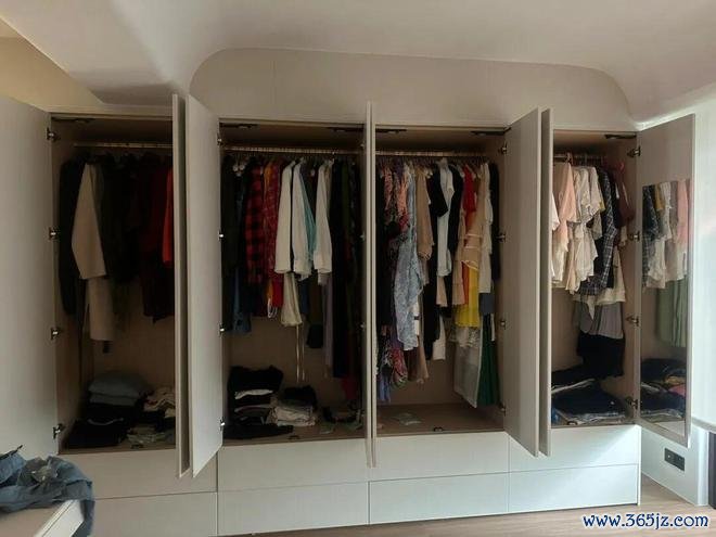 以前定制衣柜时,都喜欢在侧面设计几个转角隔层,方便收纳一些物品。可住久了,就会发现转角隔层特别容易乱。