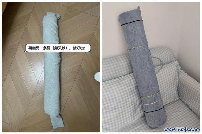 没有那么多的奶茶袋,就直接将凉席套进牛仔裤或者秋裤的裤腿里,同样可以防尘收纳。
