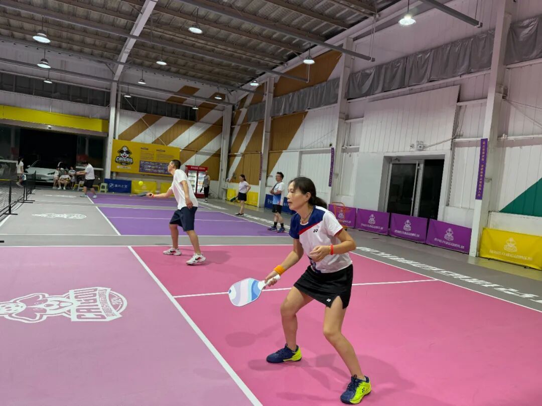 本次“十百千万”培训项目新增了“网红”项目——匹克球,在菜狗匹克球俱乐部赛事级球场上,广大职工体验到了什么叫“拿着乒乓球拍在羽毛球场地打网球”。匹克球球速不快、力量要求不大、场地大小适中,上手容易、社交性极强,适应年龄段可以从8岁拓展到80岁。且以其经济性非常适合全民推广。一块玻纤球拍一百多元可以打2年,一个塑料质地的赛事级匹克球30块钱可以打一年,也不挑场地,最简单室外水泥地就可以玩。