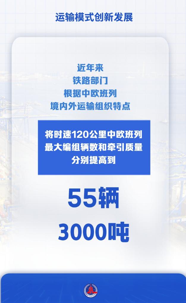 近年来,铁路部门根据中欧班列境内外运输组织特点中金策略,将时速120公里中欧班列最大编组辆数和牵引质量分别提高到55辆、3000吨。