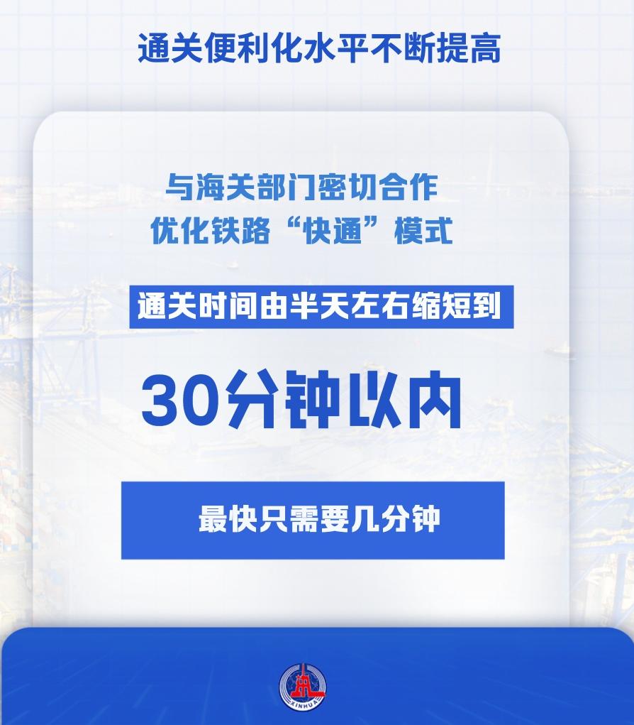 与海关部门密切合作,优化铁路“快通”模式,通关时间由半天左右缩短到30分钟以内,最快只需要几分钟。