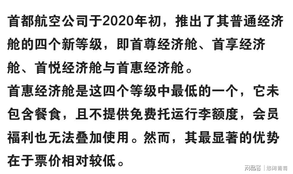 回京已经有段时间了,但这次行程真的让我感受深刻。我也一直在怀疑是不是我买的是廉航而不自知,于是找个空闲的时间仔细翻看订单确认。原来在订票平台的航班搜索页面,我乘坐的那趟航班确实没有任何廉航的标签,但是进入预订页面,打开明细是有“首惠经济舱”的标注,但是所有可选预订票价都有这个标注,也就是说,整趟航班应该属于首惠经济航班,而不只是我买到的舱位是首惠经济。对于首惠经济舱,网络上搜到的解答是这样的: